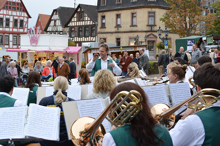 Zum zweiten Mal gastierte das Jugendorchester bereits beim Schelmenmarkt in Gelnhausen, aber eine Premiere war der Auftritt auf und vor