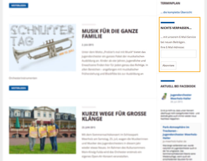 Das Jugendorchester Meerholz-Hailer bietet seinen Website-Nutzern einen neuen Service an. Ähnlich wie in sozialen Netzwerken können sich interessierte Leser nun eine E-Mail-Benachrichtigung