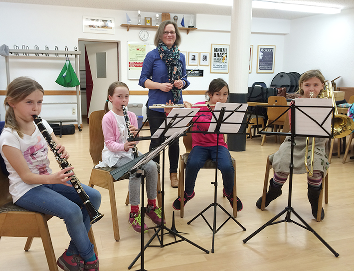 Seit knapp zwei Monaten trifft sich jeden Montag wieder das Ausbildungsorchester. Die 4 Mädels im Alter von 8 und 9