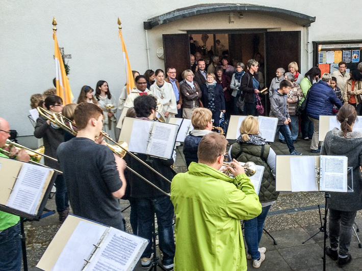 Sichtlich überrascht zog Pater Jerry, begleitet von seinen Ministranten, aus der Kirche, nachdem er einen Dankgottesdienst zu seinem 50. Geburtstag