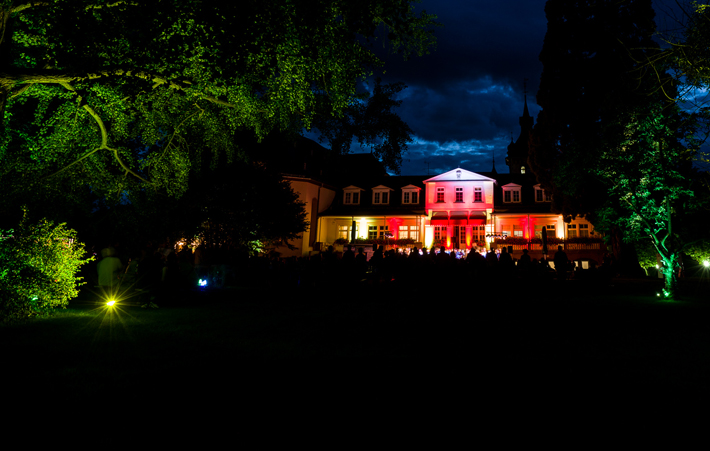 UPDATE Schon von der Meerholzer Allee aus konnte man den illuminierten Park und das Schlossgebäude aus dem 16. Jahrhundert erkennen,