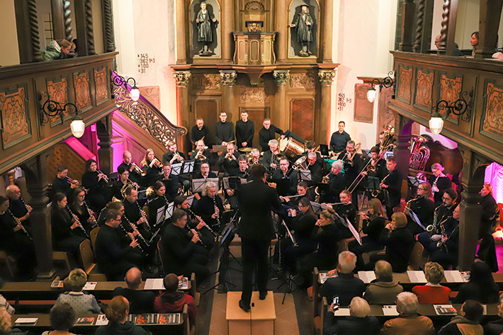 Begonnen hatte der Abend mit der „First Suite in Es“ von Gustav Holst und dem kompletten Stammorchester. Dann traten die einzelnen Register in den Vordergrund, oder, wie Ellen Dörr betonte: „Heute machen sich die Musiker vor Ihnen nackisch.“ Die Arbeit in den kleinen Gruppen habe den Musikern großen Spaß gemacht, allerdings auch eine immense Herausforderung dargestellt, betonte Dörr. „Wir sind sehr dankbar, dass Michael Meininger mit der Unterstützung von professionellen Dozenten diesen Weg mit uns gegangen ist“, sagte die Musikerin. Beim Konzert hieß das: Keiner konnte sich verstecken. Und die intensiven Vorbereitungen hatten sich gelohnt.